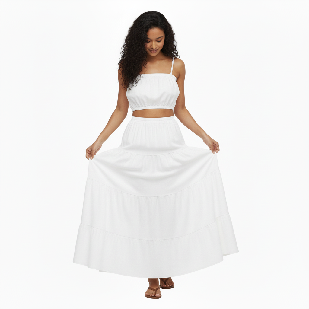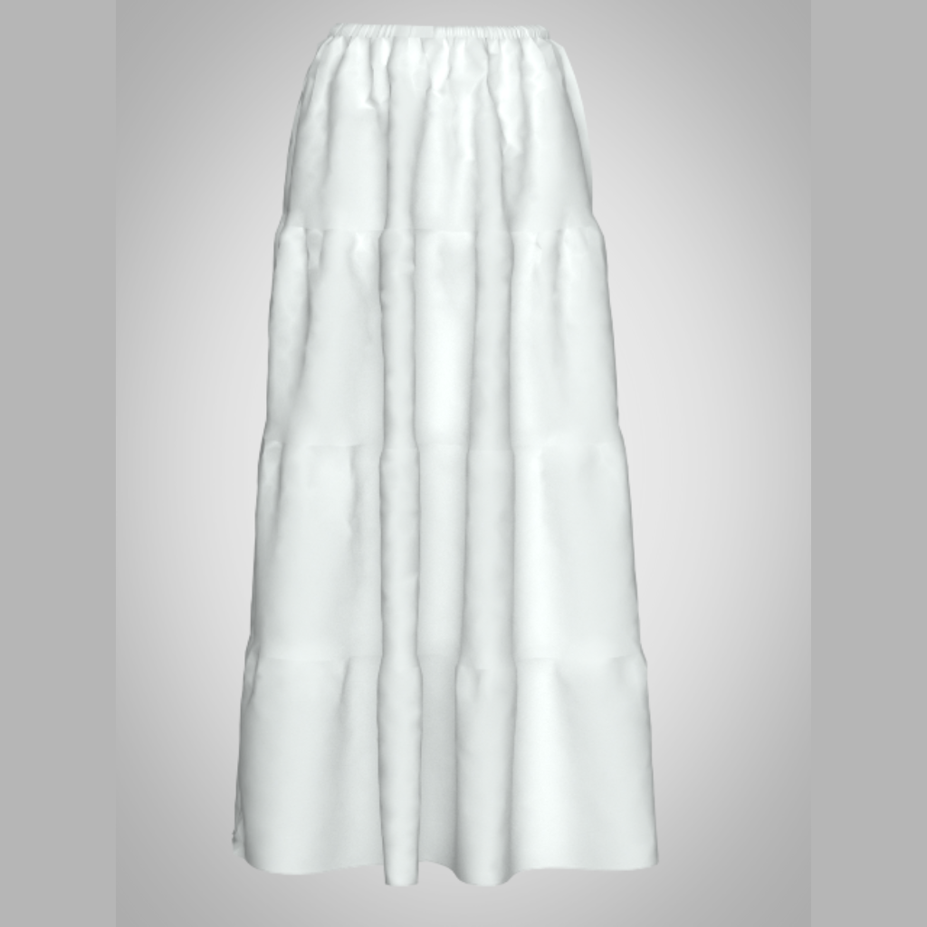 Este patrón está pensado para tejidos ligeros y cómodos como poplin y lino, materiales perfectos para confeccionar una falda que sea tan fresca como duradera. La elección de estos tejidos no solo resalta la textura y caída de la prenda, sino también garantiza que el resultado sea ideal para climas cálidos y looks casualmente elegantes.