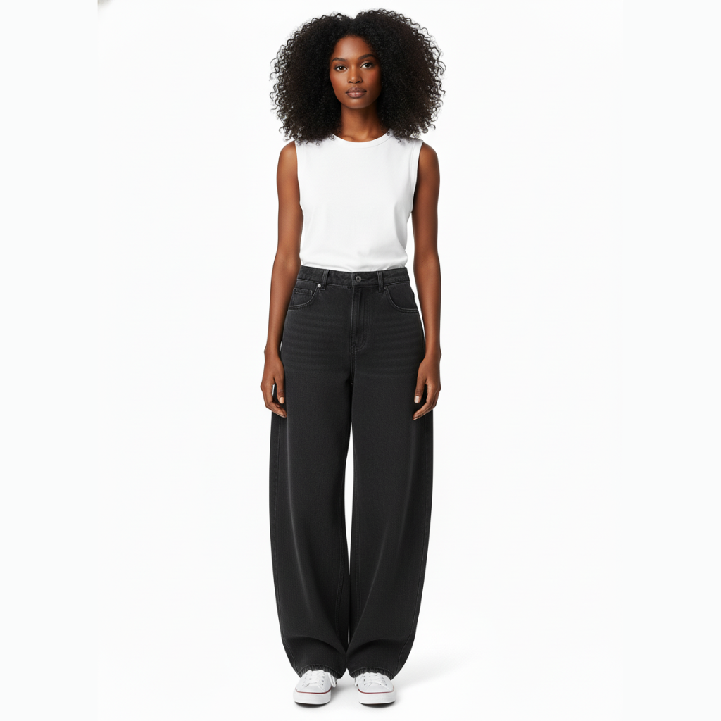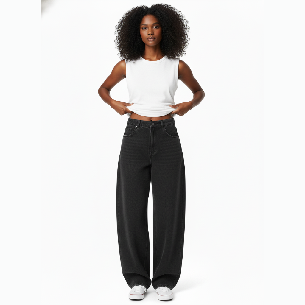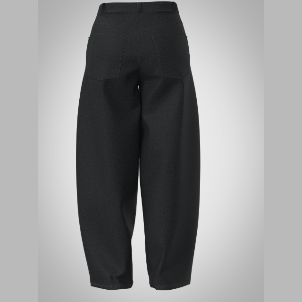 El denim rígido es el material clave de este patrón, garantizando un acabado robusto y duradero. Este tejido es conocido por su resistencia y por mantener la forma, lo que le otorga al diseño balloon un volumen distintivo que no se deforma con el uso continuo. Este patrón es versátil; puedes personalizarlo para adaptarse a diferentes estilos, ya sea informal, chic o casual. Además, su estructura se presta perfectamente para combinar con diversas prendas como tops ajustados o camisetas oversize.